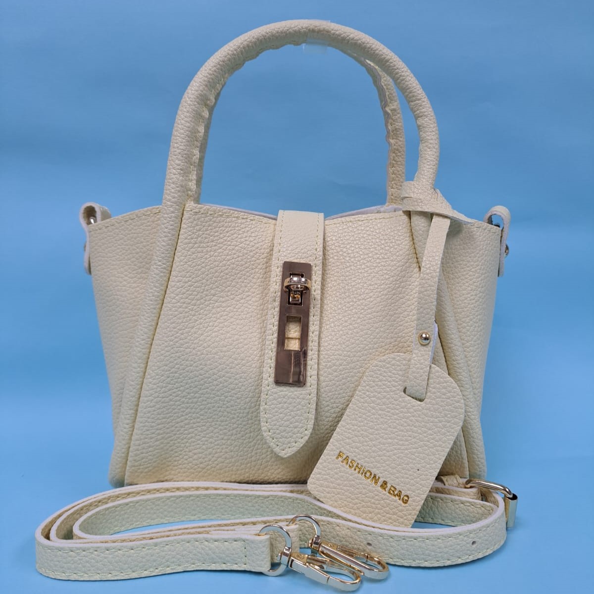 金屬撞色單肩手提手袋 – 白配藍